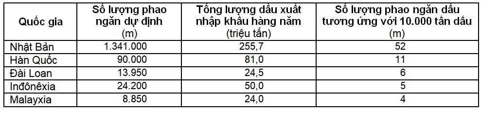 Bảng 1: Lượng phao ngăn dầu dự trữ của nước ngoài